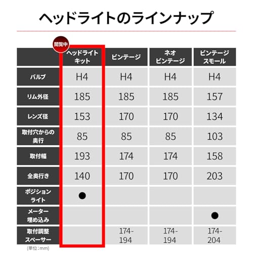 5. 【比較表】GSR400用として検討できる人気丸目ヘッドライトのスペック概要